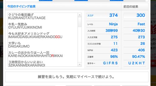 昨日は転職面接で某社にお邪魔した。 なぜ転職面接受けたのか云々はさておき、その際のやり取りの中で 「タイピング速度はどのくらいですか?」 というものがあった。「え、えっと、遅くはないです」 という漠然とした返答をした自分。 これでは伝わらないと…