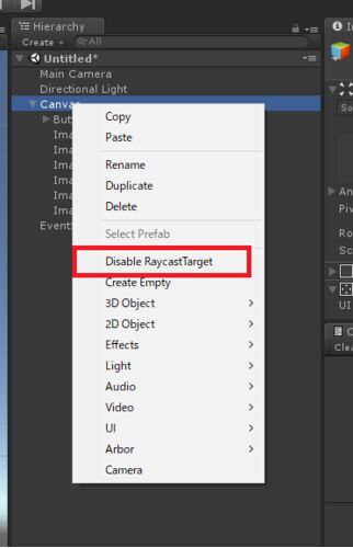 動機 UnityでUI作ってるときにボタンが反応しなくて焦るときがたまにあります。 原因は大抵 ・EventSystemがシーン上に無い ・押したいボタンの上にRaycastTargetが有効なオブジェクトが被っている の2点です。後者のRaycastTargetをオフにする作業って結構…